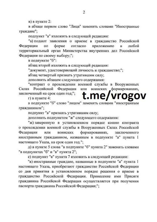 В понедельник, 15 мая, российский диктатор Владимир Путин подписал закон об упрощенном предоставлении гражданства иностранцам, которые пойдут на войну в Украину.