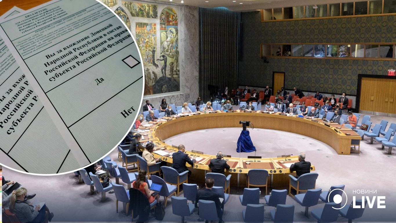 По информации издания, Совбез ООН соберется на заседание, посвященное незаконным "референдумам", которые россия проводит на временно захваченных территориях Украины, во вторник, 27 сентября.