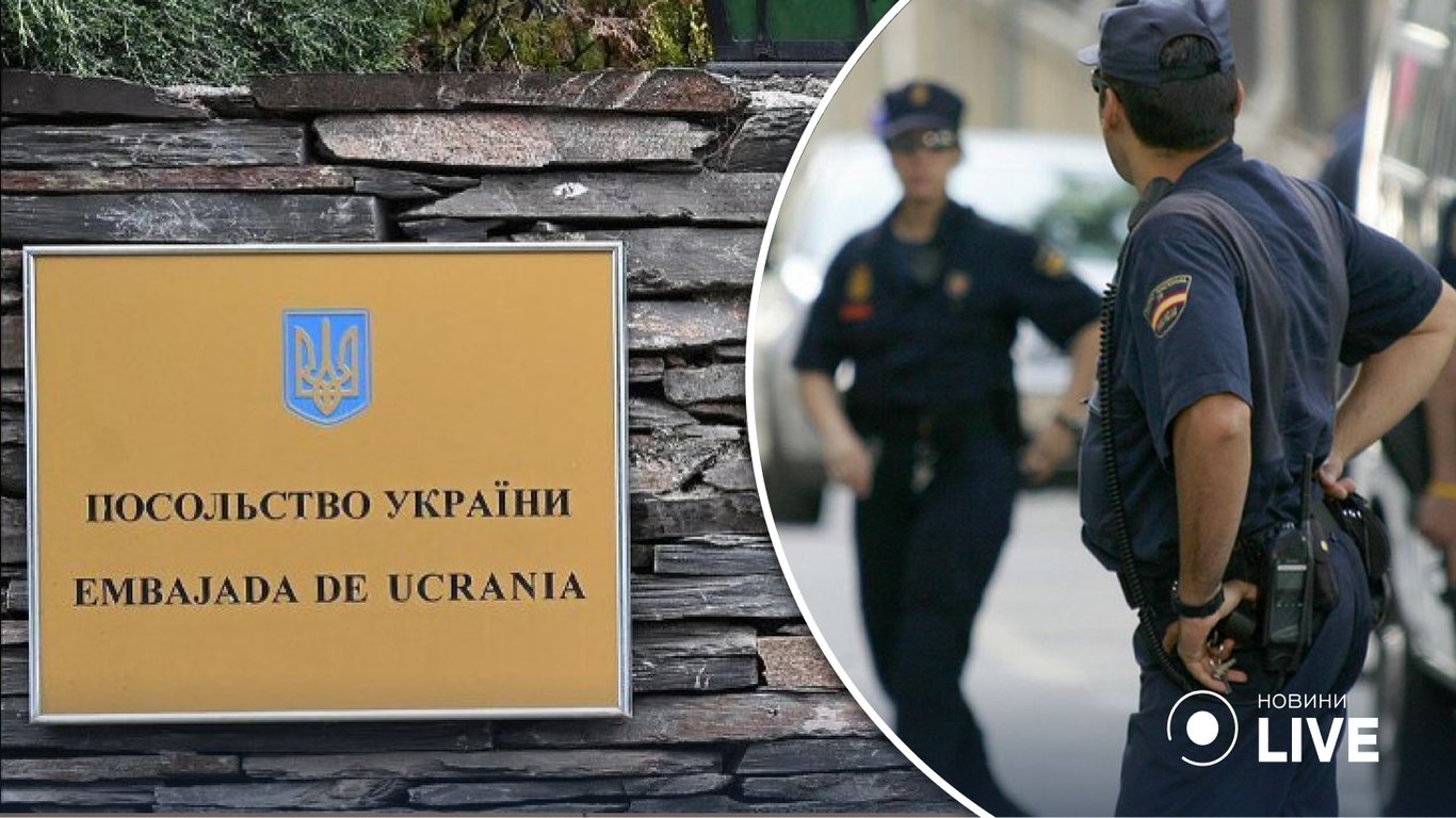 Полиция привлекла антитеррористический протокол и оцепила территорию, на которой расположено посольство, по адресу Ронда Абубилла, 52, на площади Леси Украинки.